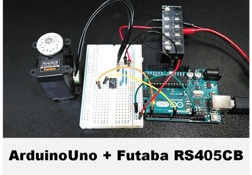 前回は双葉サーボRS304MDをArduinoからTTL通信で動かしたが、今回はRS405CBをArduinoから動かしてみる。RS405CBはRS304MDと異なり、RS485 という通信方式を採用しているので、回路を変更する必要がある。