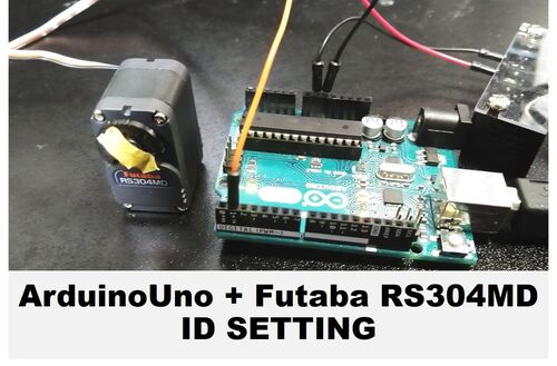 ArduinoUNOでフタバコマンドサーボRS304MDのID設定を変更、ROM保存、再起動から動かす。Arduinoスケッチは下に公開する。